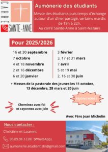 Contact : Christine et Laurent PONS – aumonerie.etudiants.stn@gmail.com