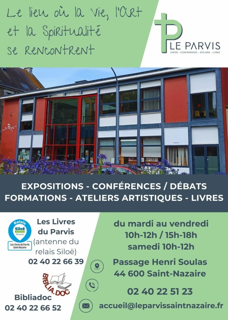Pôle culturel du diocèse de Nantes inauguré en 2009, le Parvis est un espace d’accueil et de dialogue entre l’Église et la société au cœur du bassin nazairien. Ouvert à tous ceux, croyants ou non, qui s’interrogent sur le sens de la vie et l’avenir de l’homme.