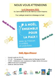 Venez participer au partage de Noël de la Mission Ouvrière le samedi 6 décembre (à partir de 15h00) au Carré Sainte-Anne, suivi de la messe à Sainte-Anne.